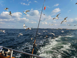 Først fiskede vi efter de store torsk ude omkring Ven. Det