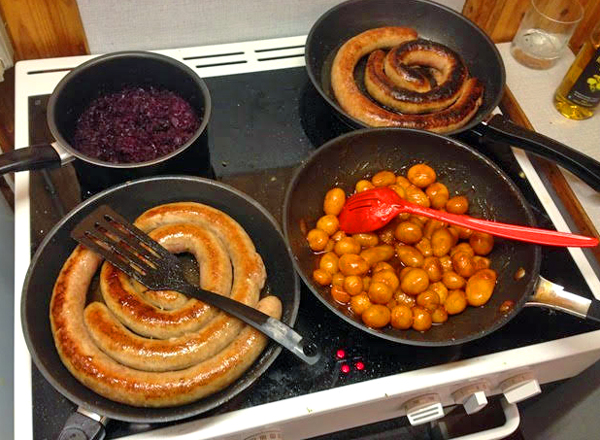 hvorefter der kom flæskesteg med rødkål, medisterpølse med